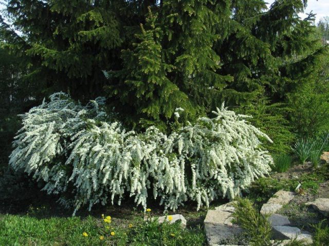 Ова врста је слична спиреа Вангутта, али њени цветови нису тако пухасти јер су прашници мањи и краћи. Изданци се појављују дуже и грациозније. А цвета раније, када на гранама још увек нема лишћа. Примените формативно обрезивање пролећне спирее након цветања, од јуна.
