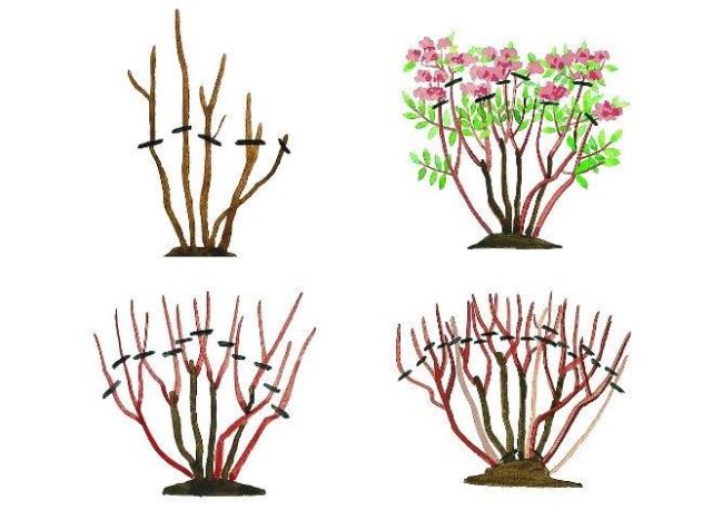 - Старе дрвенасте гране скраћују се до нивоа раста првих пупољака. Танке и суве гране морају се у потпуности уклонити.
