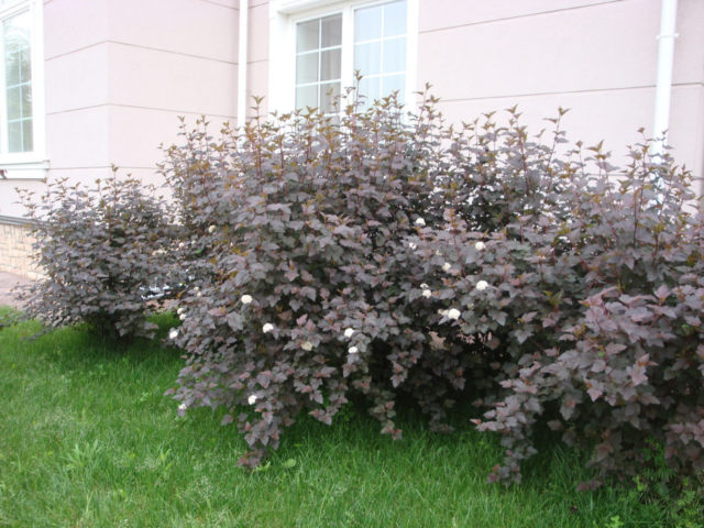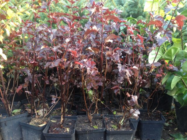 Кора стабљика је тамно бордо. Листови, распоређени у паровима, имају облик три или пет режња. Њихова дужина достиже 4-5 цм. Боја биљака на сунчаним подручјима је црвено-љубичаста, у грмовима који расту у сенци - љубичасто-зелена. У јесен се боја листова мења у златну.