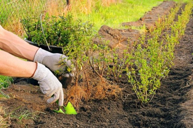 Потопите корење у топлу воду неколико сати пре садње. Испод грма се ископа рупа дубока 50-60 цм, у коју се сипа гомила хранљивог тла (мешавина земље са хумусом). Даље, на овом брду је инсталиран грм, чији су корени исправљени. После тога потребно их је посипати земљом, остављајући коренов врат мало изнад нивоа земље. Земља је збијена и биљка се обилно залива.