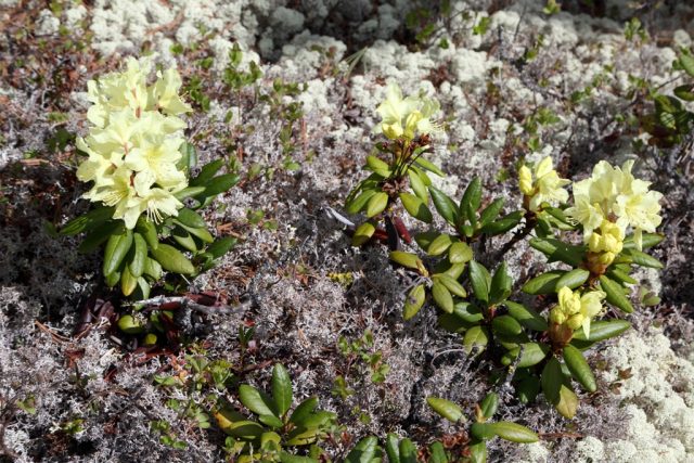 Камчатски рододендрон расте у тундри, кедровим шумама, на стенама морске обале, личи на патуљасту биљку високу до 35 цм. Остатак изданака је равне, зеленкасте или црвенкасте боје.