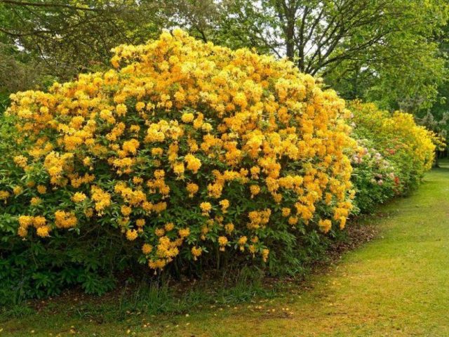 Листопадни жути рододендрон користи се у појединачним и групним садњама. Биљка постаје средишњи део композиције. Изгледа посебно импресивно поред осталих листопадних рододендрона, на позадини травњака и зимзеленог дрвећа.