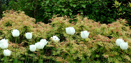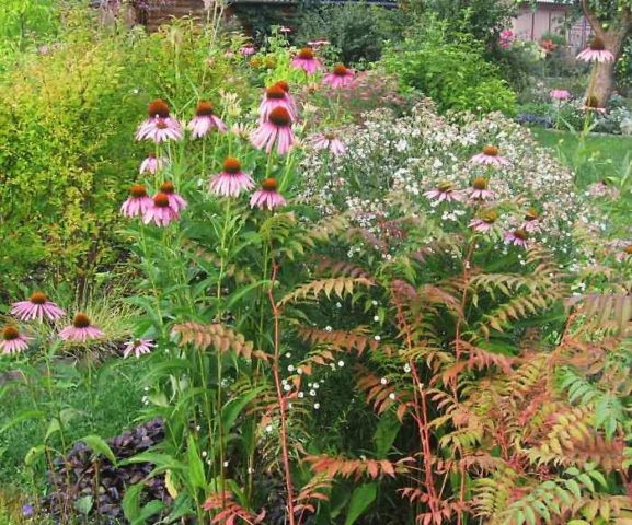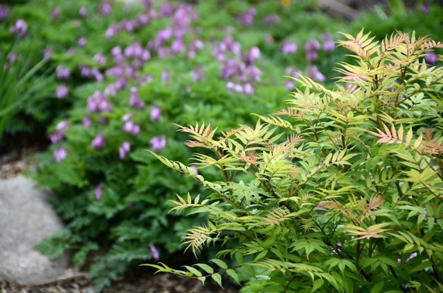 Поље лишћа планинског пепела може постати најизразитији елемент баште ако се у непосредној близини поставе одговарајуће биљке пратиоци.