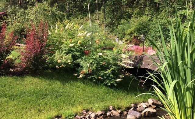 Не губи свој шарм у групним засадима приликом украшавања камењара и алпских тобогана. У таквим пејзажним композицијама лишће спиреа планинског пепела допуњује биљке сапутнице, служи им као неупадљива ажур позадина.