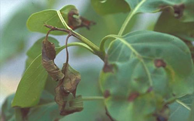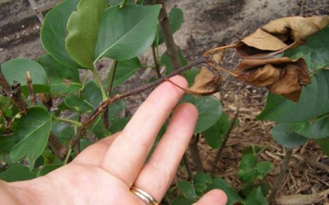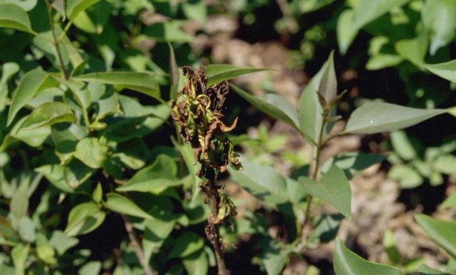 - Бактеријска некроза... У пратњи промене боје лишћа из зелене у сиву. Изданци постају смеђи. Да бисте то спречили, препоручује се проређивање круне за вентилацију јоргована.