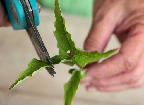 - На сваком резу, доњи лист се уклања заједно са петељком. Преостали листови су пресечени на пола.