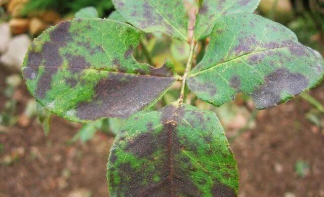 Узрочник црне пегавости је печурка Марссонина росае. Болест погађа лишће, али понекад и младе растуће изданке. На псећој ружи се може препознати по заобљеним мрљама смеђе, готово црне боје. У почетку су мали, појединачни, пречника 5-15 мм. После тога, на некротичним подручјима појављују се црне красте - споре гљивица.