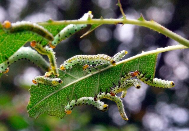 Личинке пиле се појављују на шипку крајем јуна.