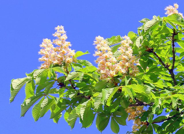 Фотографија приказује грану кестена током цветања, које се јавља у мају. Дрво не цвета док се ваздух не загреје до жељене температуре. Мразеви ретко погађају цвеће. Култура припада јаким медоносним биљкама, круна је увек окружена великим бројем пчела. Биљка је једнодомна са хетеросексуалним цветовима, захтева опрашиваче, стога током цветања одише упорном, трпком аромом која привлачи инсекте. Самоникли усјеви се гаје као медоносне биљке и за уређење зелених површина. На личним парцелама можете узгајати дрвеће које даје јестиво воће.