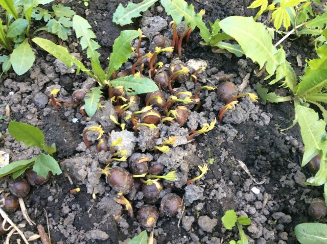 Постоје два начина за узгој орашастог кестена код куће. Садни материјал се сакупља и чува до пролећа, затим клија и сади на локацији. Друга опција - јесењи плодови су закопани у рупу, на пролеће ће сами клијати. Предрасли кестен за пролећну садњу: