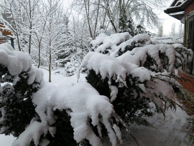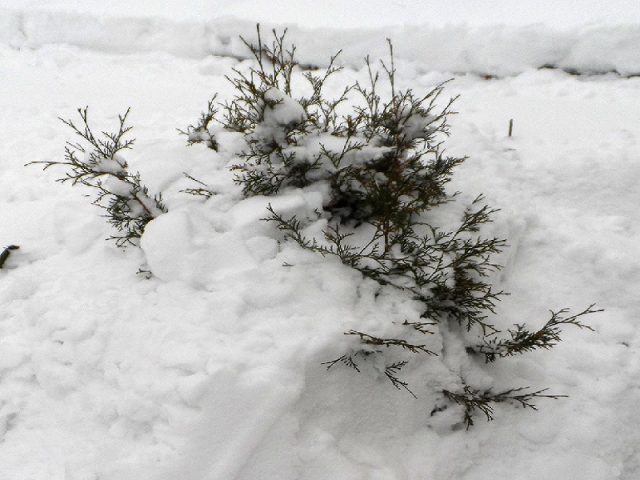 - У регионима са снежним зимама, коријенски систем најлакше је покрити снегом. После првог снежног пада, претходно везани грм је изолован снежним наносом. У ове сврхе су погодне само свеже падавине. Поступак захтева негу, јер је важно да се не оштете гране и пртљажник.