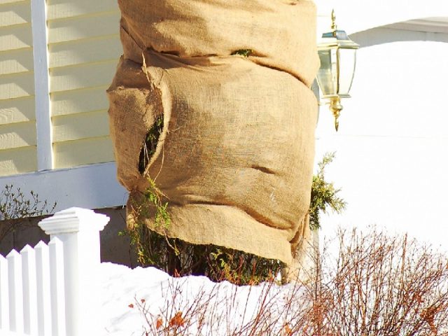 - У регионима у којима снег нестабилно пада, агрофибре или бурла се најчешће користе за склониште биљака клеке. Круна је умотана тако да је дно дрвета отворено. Како правилно организовати процес спашавања смреке зими, добро је приказано на фото сајтовима и форумима вртлараца на Интернету.Важно! Филм се не сматра опцијом за изолацију, јер испод њега садница може иструнути или се разболети.