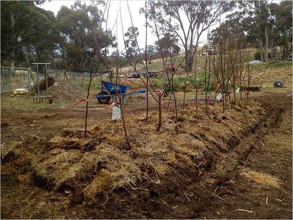 Поред ризома залепљен је стуб као потпора младом дрвету. Приликом корења водите рачуна да се коренов врат налази на 7-8 цм изнад земље.
