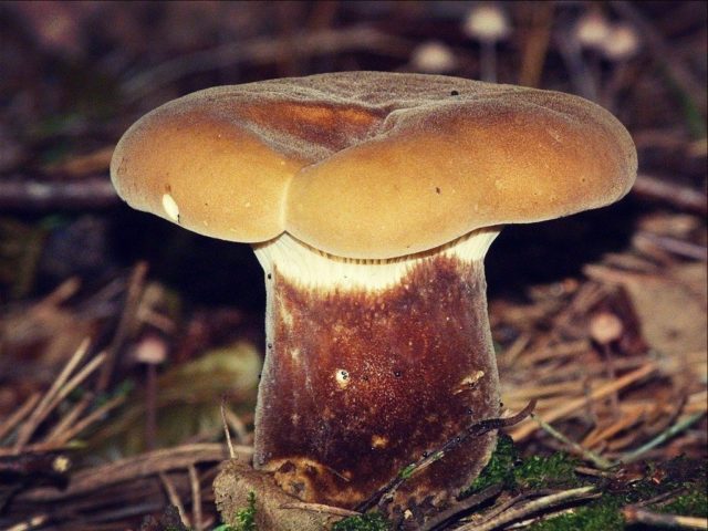 - Дебео... Прилично ретка сорта која се налази у умереном појасу Европе. Има јасно означену капу величине 5 - 15 цм, конвексног, полулоптастог облика. Његов централни део је благо удубљен. Површина је сува, баршунаста на додир, смеђа или окер. Дужина ноге достиже 12 цм, у опсегу - 5 цм. Месо гљиве је беличасто, без мириса. Сорта се сматра условно јестивом. Једе се након термичке обраде.