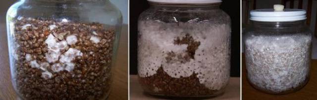 Даље, прелазе на размножавање мицелијума. Средњи мицелиј се најчешће узгаја помоћу житарица. Тестирана и квалитетна зрна се сипају водом у омјеру ½. Затим се кувају око четврт сата. После тога, зрно се мора осушити и комбиновати са калцијум-карбонатом и гипсом.