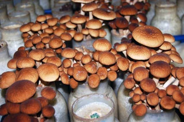 Када се подлога охлади, рупе се пробуше штапом, мицелиј се напуни унутра. На врх је положен слој влажне вате. Тегла се затвара поклопцем са отворима за вентилацију. После месец дана, супстрат ће бити обрастао мицелијем. После још 20 дана појавиће се печурке. Када капе дођу до поклопца, уклањају га. Банке се постављају на топло, осенчено, влажно место. Након бербе првог таласа жетве, следеће гљиве ће порасти за 20 дана.