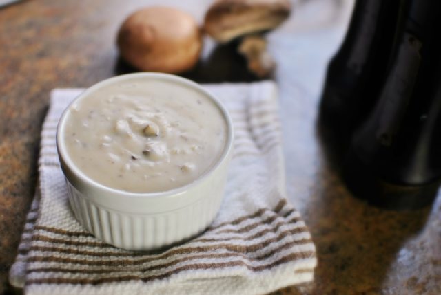 - Добијена маса се охлади, а затим сруши блендером док не постане глатка.