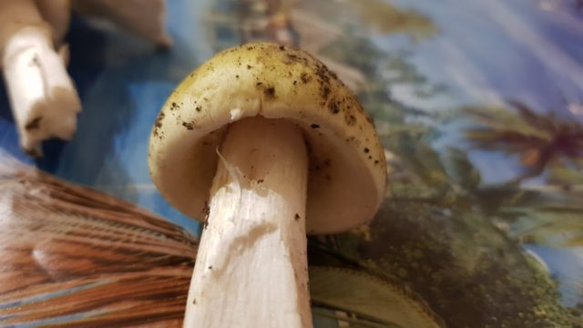 - Нога. Може бити до 15 цм у дужину и 3 цм у опсегу. Чврста, полуцилиндрична, нога се мало шири на површину земље. У одраслих примерака, његова пулпа након резања постаје жилава, влакнаста, воденаста.