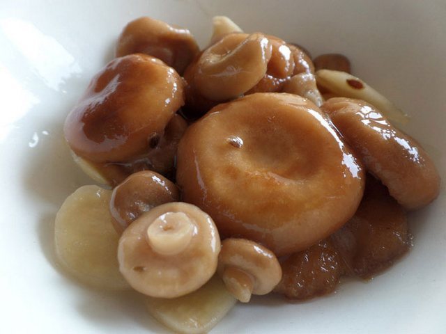 После намакања, печуркасте капе постају мекане и савитљиве, потпуно мењајући своју структуру. За разлику од сирових, они се не ломе, већ се савијају. Поред тога, губе свој хрскави квалитет током процеса намакања. Боја капица прелази из светло розе у сивкасту, тамнију.У процесу сољења или других метода кувања, печурке још више мењају боју, потамне.