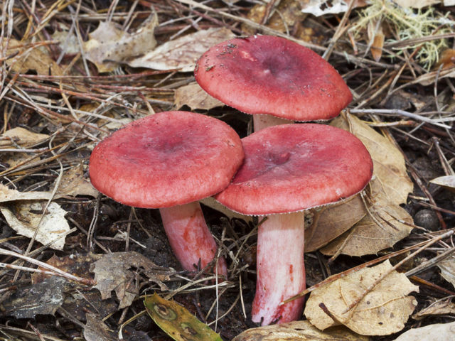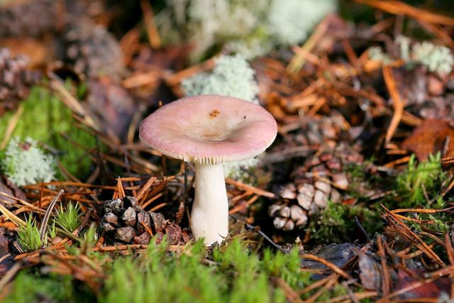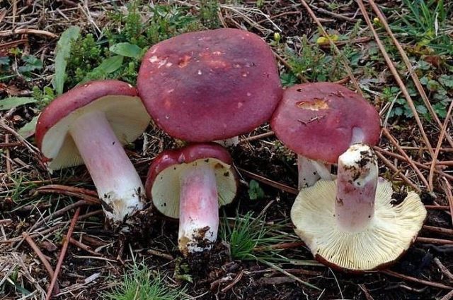 - Руссула пинк... Има капу пречника 4-10 цм, полулоптасти облик, који се касније отвара, у средини постаје конкаван. Површина печурке је сува, са чак дебелим рубом, за влажног времена постаје благо лепљива. Карактеристична карактеристика је ружичасто-црвена боја са нејасним бело-жутим мрљама и кожом која се не може уклонити.