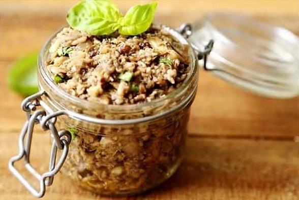 - Добијена маса се шири у тегле и сипа врућим биљним уљем.