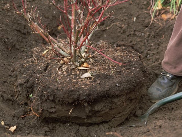 - грмље се укопава са свих страна, одступајући од дебла за 40-50 цм, до дубине од 30 цм;