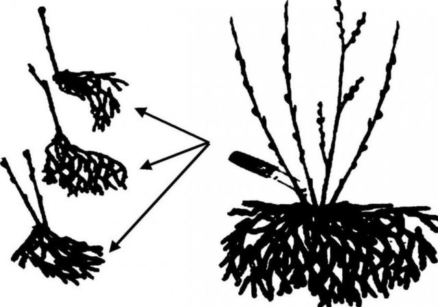 - Проређивање... Ова врста резидбе врши се ради уклањања абнормално растућих изданака који леже на земљи или згушњавања грмља, као и ради уклањања вишка раста корена. Поступак се спроводи у јесен након завршетка вегетације, али пре почетка мраза.