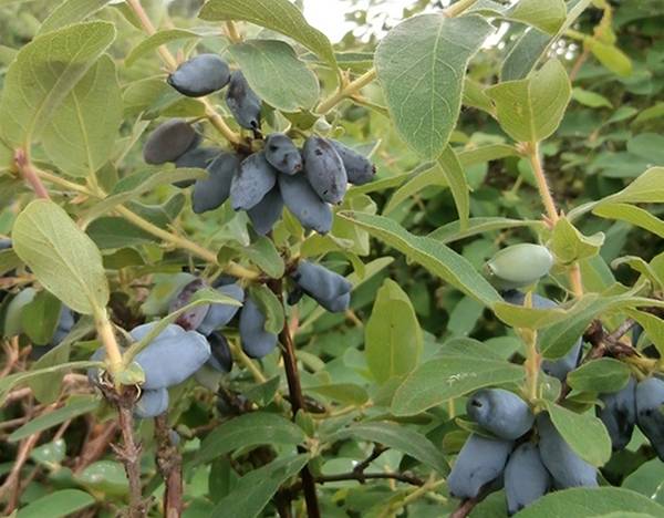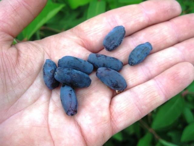 Бобице медоносне нимфе су средње величине - од 0,8 г до 1,1 г. Обојене су плаво, али због цветања воска изгледају плаво. Кожа дугих вретенастих плодова средње густине, грудаста. Максимални принос одраслог грма је 2 кг, просек је 1,3 кг. Индустријским узгојем можете сакупити 37 ц / ха.