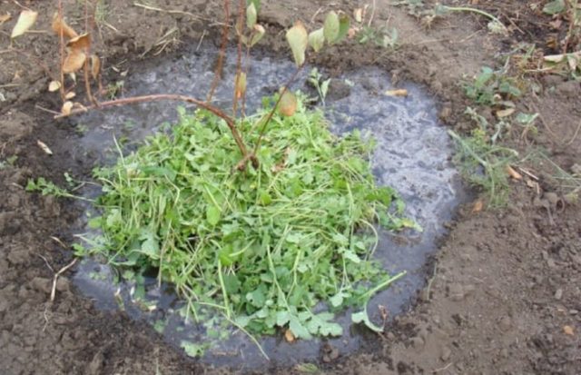 - Јама је прекривена земљом, биљка се залива у корену, избегавајући да вода дође на пртљажник.