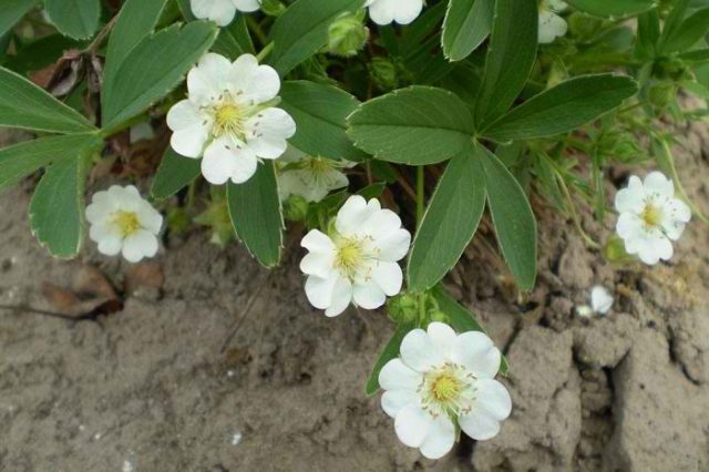 Постоји око 300 врста цинкуефоил-а, али само бели цинкуефоил (корен) је нашао примену у лечењу штитасте жлезде. Препознаје се по белим цветовима који имају тачно 5 латица, исто толико листова налази се на стабљици. Због тога бела цинкуефоил има и друго име - пет прстију.