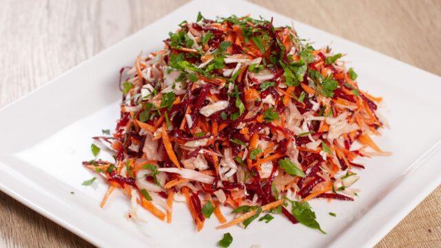 - Шаргарепа и цвекла се оперу, ољуште и поново исперу у хладној води.