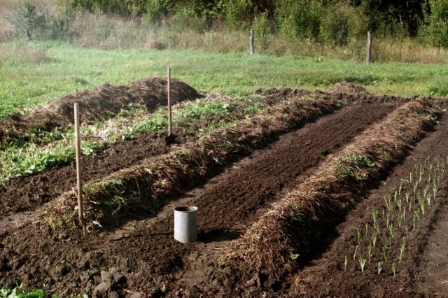 - На сличан начин се у земљишту израђују жлебови дубине 5 цм. Између редова остаје 15 цм.