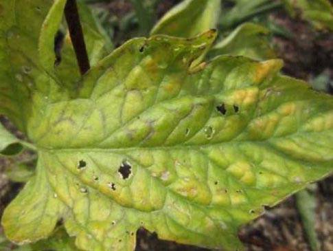 На пример, недостатак мангана може довести до интервеиналне хлорозе лишћа на парадајзу. Погледајте доњу фотографију, како изгледају болесни листови.