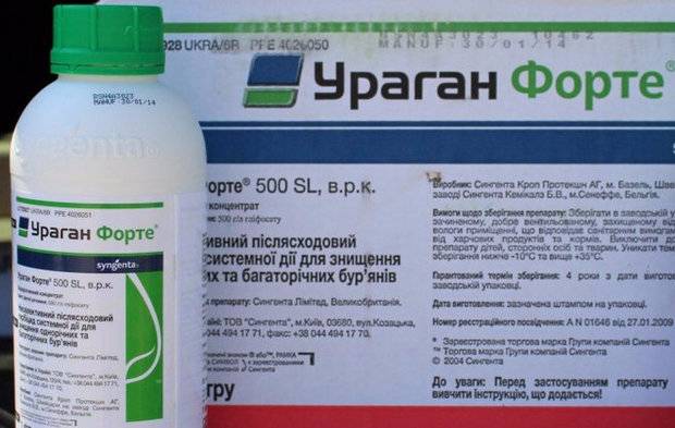 - Када се користи ураган Форте, важно је узети у обзир фазу раста корова. За једногодишње биљке оптималан је тренутак када достигну висину од 5-10 цм или пусте 2-4 прва листа. Пожељно је вишегодишње биљке обрађивати у фази цветања (за широколисне корове) или када достигну висину од 10-20 цм.