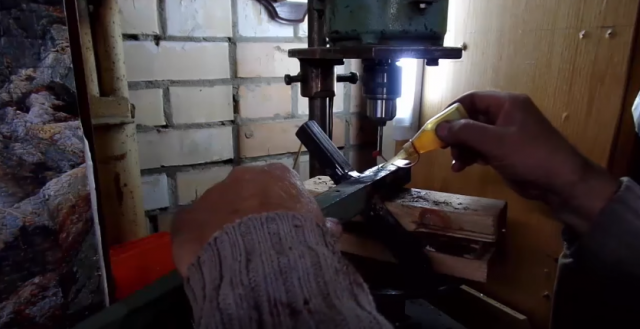 - Сада избушите рупу за вијак да бисте учврстили ручку. Средство за уклањање корена обрусите брусним папиром.
