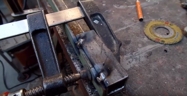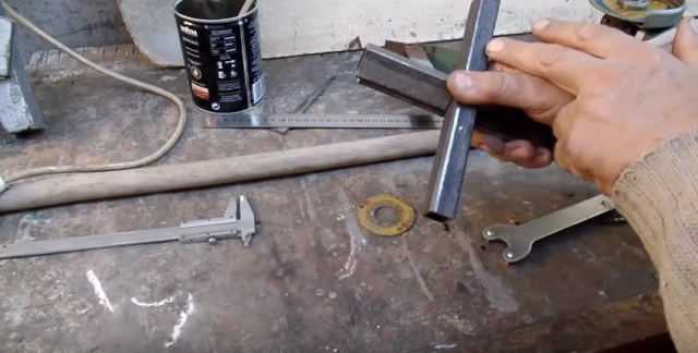 Такође, на уређај ће бити заварен још један комад профилне цеви, па ће се формирати ослонац на који можете да корачате ногом.