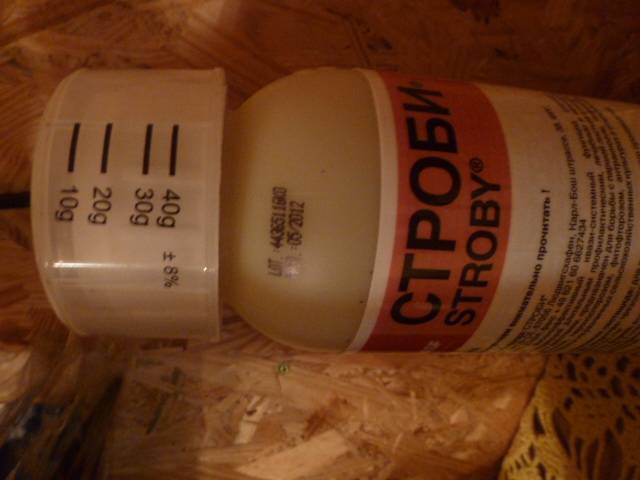 За прскање поврћа, раствор се припрема брзином од 2 г лека на 10 л воде. Стробе је ефикасан: