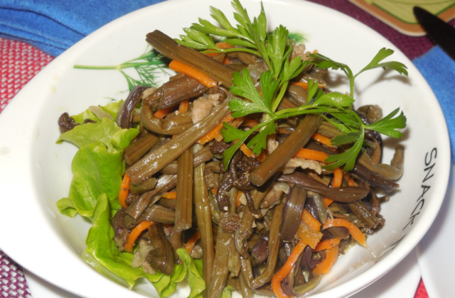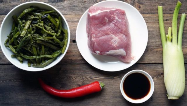 Осушене и сецкане ракије делују као зачин за месо. Слани или кувани млади листови додају се у салате, супе и главна јела. Кад је свежа, биљка је горка. Да би га елиминисали, листови су натопљени сланом водом. Да би се дуго задржала корисна својства, изданци се конзервирају. Производ се добро слаже са поврћем, месом, соја сосом и пиринчем.