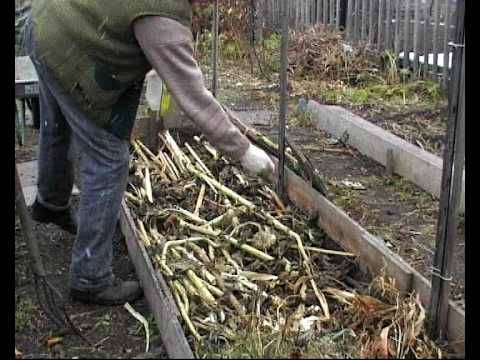 - Други слој је положен органским остацима, на пример, лишћем или травњаком помешаним са стајњаком или птичјим изметом. Након полагања, слој се набија, накнадно ће загрејати горње слојеве тла. Његова дебљина не сме бити мања од 15 цм.