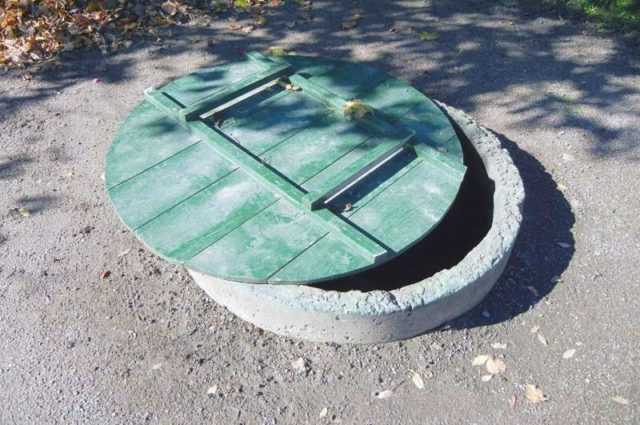 Најједноставнија верзија заштитне конструкције направљена је у облику квадратне или округле плоче од плоча. Са правилним приступом, поклопац може бити лепо украшен. Ако га обрадите материјалом за боје и лакове, тада ће бити могуће продужити његов радни век са 5 година.