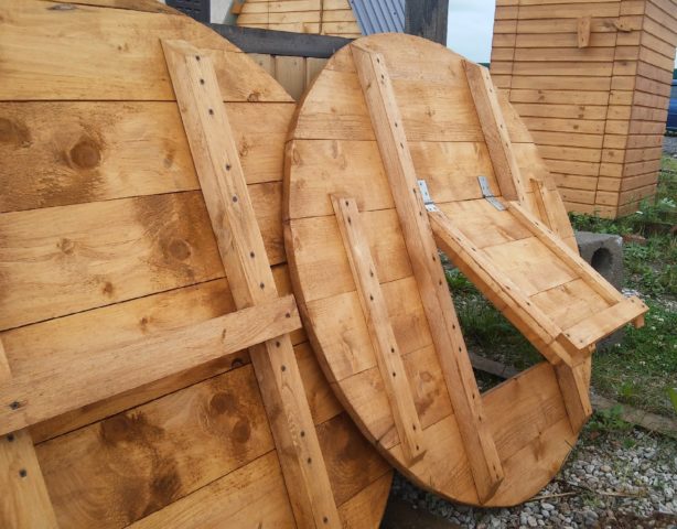 Дрвена конструкција може бити различитих модификација: шестоугаона, округла, квадратна, преклопна, склопива. Производ је еколошки прихватљив, релативно издржљив и лаган. За израду поклопаца од дрвета препоручује се употреба липе, јохе, храста или брезе.