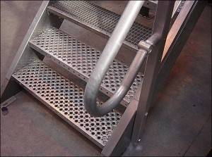Када дизајнирате степениште од метала до подрума, можете се побринути за његову лепоту. Лепе и сигурне степенице направљене су од перфорираног нерђајућег челика. Крај рукохвата се може заокружити тако да не стрше уз комад пресечене цеви.