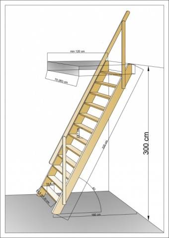 - Мердевине су постављене под наглим углом од 22 до 45О томе... Марш падине су благе са нагибом мањим од 45О томе... Ширина степеница се бира према величини слободног простора у подруму. Иако се стандардом сматрају степенице ширине 700-900 мм. Удаљеност од степеница до плафона треба да буде најмање 2 м. Тада, приликом ходања, особа не мора да се сагне.
