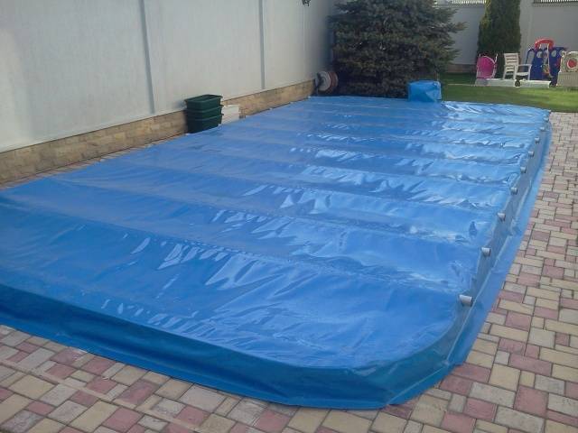 Произвођачи не узалуд препоручују покривач за базен и чак у почетку довршавају неке моделе чинија. Било које ћебе олакшат ће власнику бригу о базену. Лишће са дрвећа неће ући у воду покривене посуде. Ветар неће носити лагане остатке, прашину. Птице лете изнад базена, а без тенде измет ће бити у води.