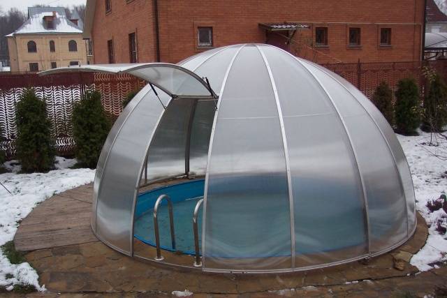 Ако је буџет за организацију места за одмор неограничен - директан пут до ВОЕРОКА или Поол Тецхнологиес.Професионални специјалисти поставиће павиљон који штити базен од кише, ветра и рушевина.