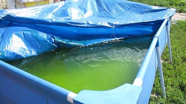 - Ни један покривач није у стању да у потпуности заштити воду од загађења, а још више од цветања.Произвођачи на тенди пружају до десет малих рупа. У случају кише, вода ће тећи у посуду уместо да се накупља на поклопцу. Иначе, под великом тежином, цело склониште ће бити претешко или ће заронити у базен. Заједно са кишницом и промајом, прашина улази кроз отворе, контаминирајући фонт. Од процветала вода базена тенда дефинитивно неће спасити, јер се процес одвија због органске контаминације.