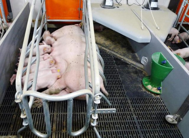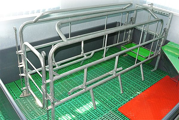 Под крмаче је мекан. Обавезно пратите доступност хране и воде. Ако је појилица празна током прасења, свиња је у могућности да једе легло. Вентилација се регулише клапнама док се не постигне висококвалитетна размена ваздуха.