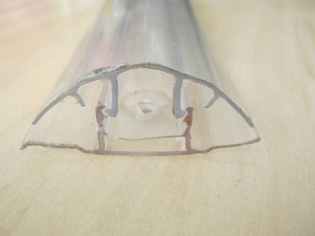 - Након завршетка рада са завршним зидовима, исеците комаде профила и, пресекавши у центру, савијте додатне клизаљке, исте величине као и за крајње зидове. Овде треба тачно израчунати број клизаљки. Ширина поликарбоната је 2,1 м, али такви распони ће улегнути и снег ће пасти кроз њих. Оптимално је поставити клизаљке на корак од 1,05 м. Није тешко израчунати њихов број дужине стакленика.