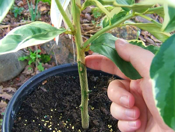 - У доњем делу изданака, сече се под оштрим углом на обе стране.
