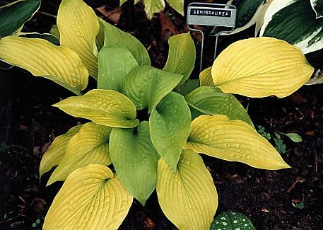 Биљка Кхоста Сиеболд Семперауреа, која се на латинском - Семперауре, одликује благо суженим листовима средње величине са жуто-зеленом нијансом.